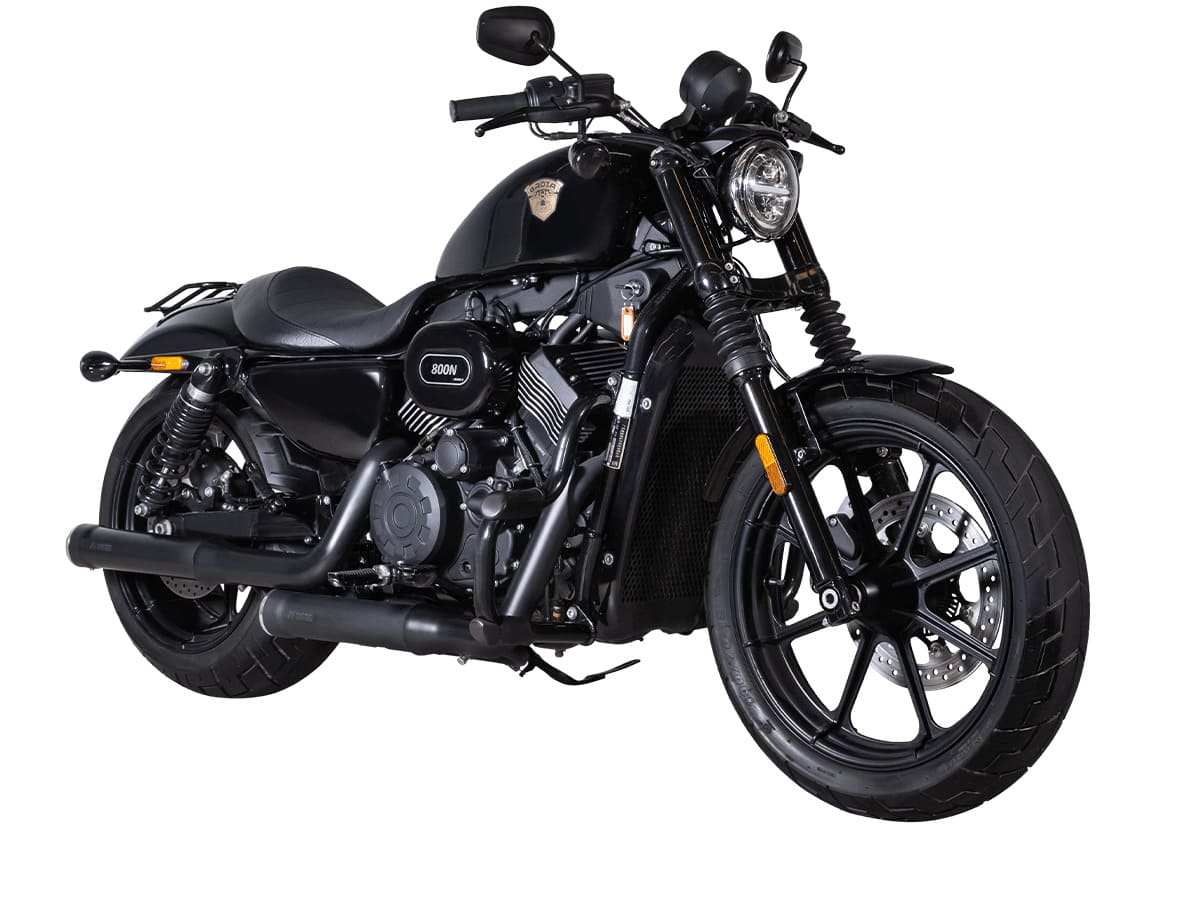 GROZA Toughman 800 – круизёр, который полностью оправдывает своё название – это действительно мотоцикл для крутого райдера. В глаза сразу бросается его агрессивный, приземистый силуэт с драгстерными мотивами. Весь мотоцикл исполнен в монохромной, радикально чёрной гамме. Супернизкий и узкий руль, компактные бак и сиденье, мультимедийная панель, заключённая в стакан от аналогового прибора, два ствола глушителей с изумительными патрубками на концах и притягивающая взгляд крышка корзины сцепления, напоминающая нечто из аэро-космической области.